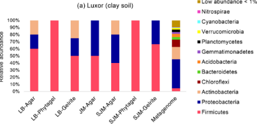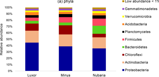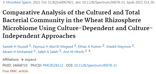 根際和根相關(guān)細菌是作物生產(chǎn)和可持續(xù)農(nóng)業(yè)的關(guān)鍵組成部分。然而,這些有益細菌的利用通常受到傳統(tǒng)培養(yǎng)技術(shù)的限制,因為大多數(shù)土壤微生物不能使用標準實驗室培養(yǎng)基進行培養(yǎng)。因此,本研究的目的是通過使用宏基因組分析和改進的基于培養(yǎng)的方法,提高可培養(yǎng)性并研究從埃及三個地點收集的小麥根際微生物組中的細菌群落的多樣性,并對比土壤特征。