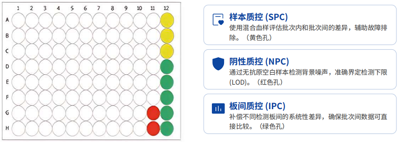 實(shí)驗(yàn)階段:在孵育/延伸/擴(kuò)增內(nèi)參每個(gè)檢測孔內(nèi)都包含3種獨(dú)立的內(nèi)參,實(shí)時(shí)監(jiān)控免疫反應(yīng)、延伸/文庫擴(kuò)增和信號檢測這三個(gè)關(guān)鍵實(shí)驗(yàn)步驟的完整性。