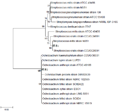 菌種鑒定一般是提取純菌A的基因組DNA,然后PCR擴(kuò)增16s rDNA片段,之后通過一代測(cè)序或三代測(cè)序檢測(cè)16S rDNA的全長(zhǎng),與國(guó)際上的數(shù)據(jù)庫進(jìn)行Blast比對(duì),默認(rèn)選取比對(duì)結(jié)果中相似性最高的前10位的物種分類信息,之后構(gòu)建系統(tǒng)發(fā)育樹,最后得出樣本A與XX物種的相似性最高。
