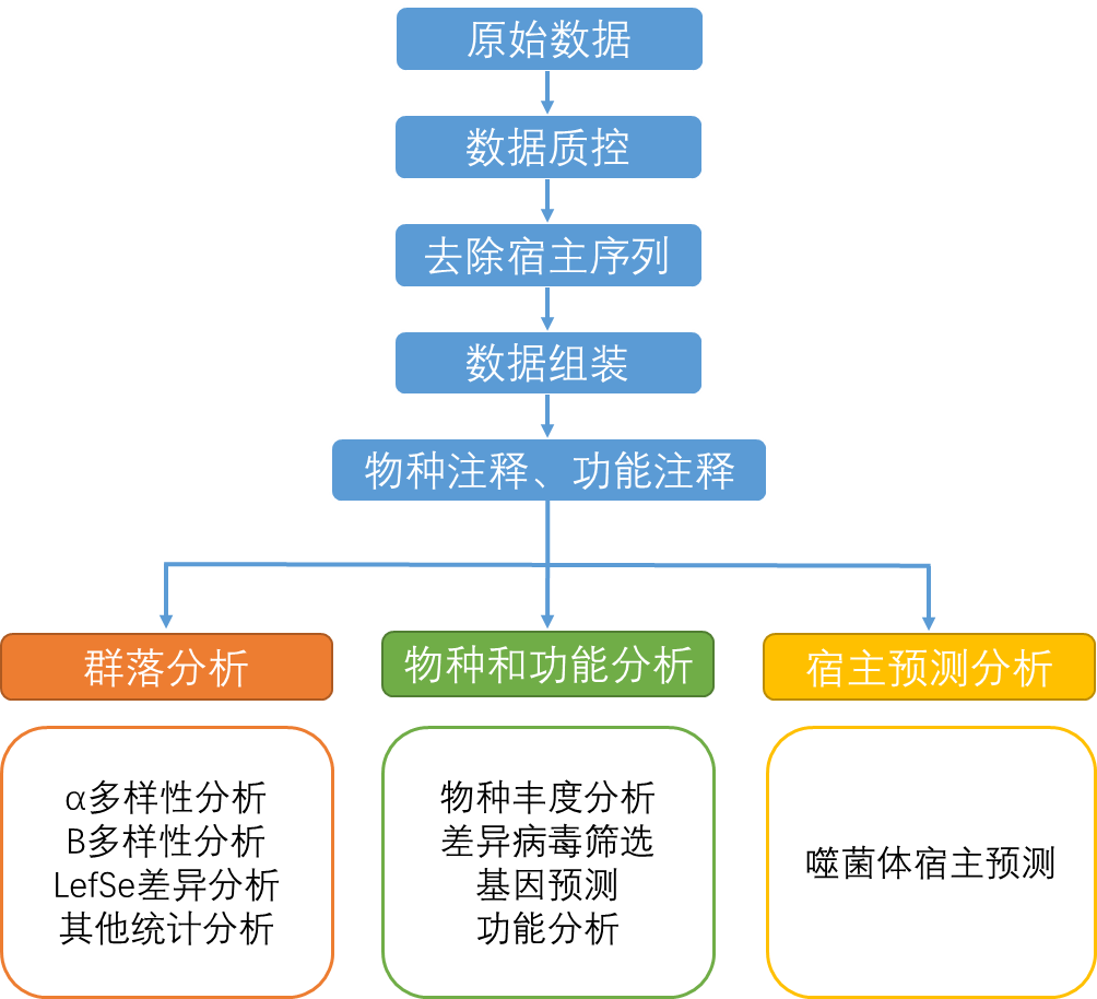 宏病毒組(Virome)是在宏基因組學(xué)理論的基礎(chǔ)上,結(jié)合現(xiàn)有的病毒分子生物學(xué)檢測技術(shù)而興起的一個(gè)新的學(xué)科分支。 宏病毒組直接以樣本中所有病毒的遺傳物質(zhì)為研究對象,能夠快速準(zhǔn)確的鑒定樣本中所有的病毒組成,不僅在病毒發(fā)現(xiàn)、病毒溯源、微生物預(yù)警等研究方面具有重要作用,在病毒的起源和進(jìn)化模式、遺傳多樣性和地理分布等研究方面也具有重要意義。宏病毒組學(xué)應(yīng)用廣泛,可應(yīng)用于人或動(dòng)物腸道或者血液樣本、水樣、土壤樣本等的研究。
