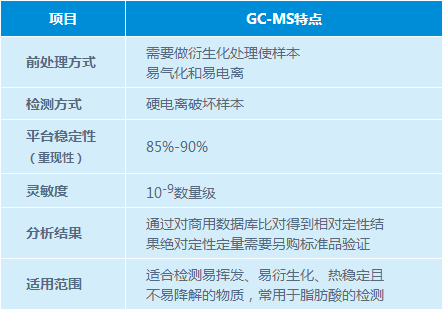 氣質(zhì)聯(lián)用技術(shù) GC-MS(Gas Chromatography and Mass Spectrometry)可對(duì)37種常見脂肪酸的絕對(duì)定性定量檢測(cè)非靶向廣篩相對(duì)定性定量檢測(cè)。