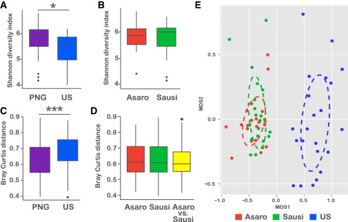 Martinez, I., J. C. Stegen, M. X. Maldonado-Gomez, A. M. Eren, P. M. Siba, A. R. Greenhill and J. Walter (2015). “The gut microbiota of rural papua new guineans: composition, diversity patterns, and ecological processes.” Cell Rep 11(4): 527-538.