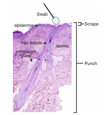 取樣方法:取皮膚表皮及皮下組織