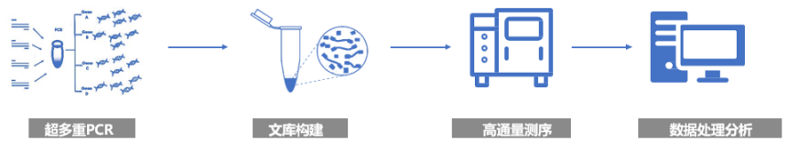 tNGS(靶向測序)結(jié)合超多重PCR擴(kuò)增或靶向捕獲技術(shù)與高通量測序。