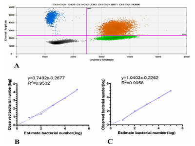 驗(yàn)證方法:通過與傳統(tǒng)培養(yǎng)法或qPCR法比較驗(yàn)證ddPCR引物和探針。將ddPCR結(jié)果與培養(yǎng)法計(jì)數(shù)結(jié)果比較,評估準(zhǔn)確性;與qPCR法比較,分析相關(guān)性和一致性,同時(shí)分析重復(fù)實(shí)驗(yàn)液滴數(shù)量分布和標(biāo)準(zhǔn)差評估重復(fù)性。