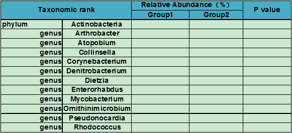 使用軟件:利用matastats [2](http://metastats.cbcb.umd.edu/)對(duì)不同分類學(xué)水平進(jìn)行的兩組樣本進(jìn)行顯著性差異分析,同時(shí)整理了高分類學(xué)水平中包含的低分類學(xué)水平的物種的顯著性差異情況。
