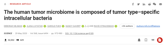 引言:細(xì)菌是人類腫瘤中眾所周知的居民,但它們的存在是否對腫瘤有利或?qū)?xì)菌本身有利一直不清楚。研究人員對腫瘤微生物組進(jìn)行了全面分析,研究了七種癌癥類型的1526個腫瘤及其鄰近的正常組織,包括乳腺癌、肺癌、卵巢癌、胰腺癌、黑色素瘤、骨癌和腦癌。