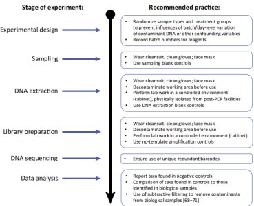 本研究首先回顧了污染物DNA和交叉污染是如何在微生物組研究中產(chǎn)生的,并討論了它們的負(fù)面影響,特別是在低微生物生物量樣本的分析期間。然后,確定了研究人員可以采取的幾個關(guān)鍵措施,以減少污染DNA和交叉污染的影響。
