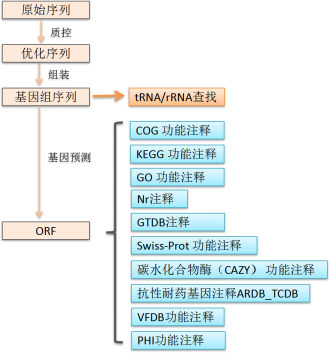 基本流程:建庫測序,序列優(yōu)化,基因組組裝,基因及結構預測,功能注釋,畫圖展示。