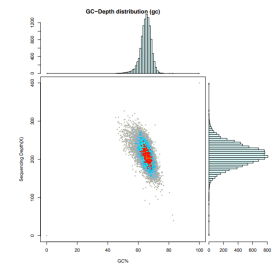 注:橫坐標表示 GC 含量,縱坐標表示測序深度